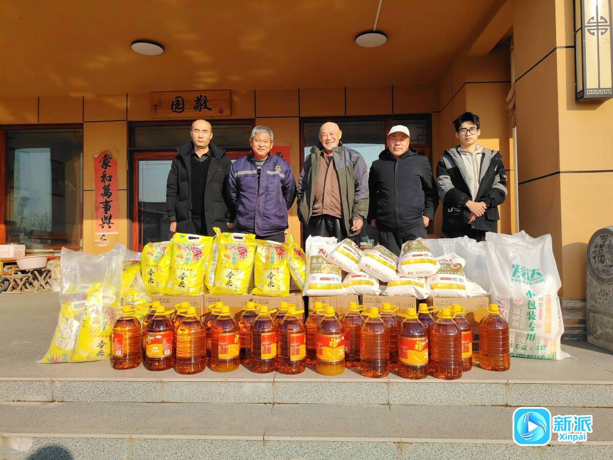 當(dāng)日一大早,一桶桶食用油、一袋袋大米和面粉,在村委大院里擺放得板板正正,幸福的年味在逄王二村彌漫。