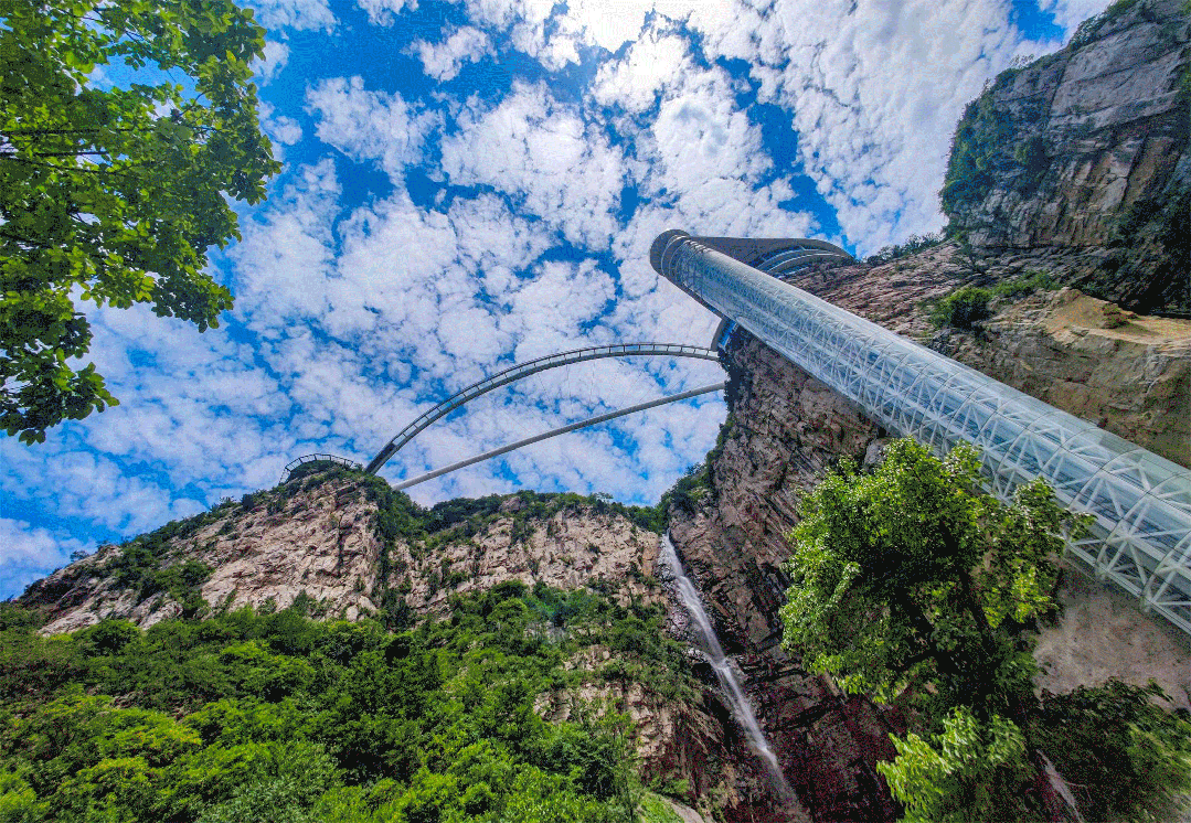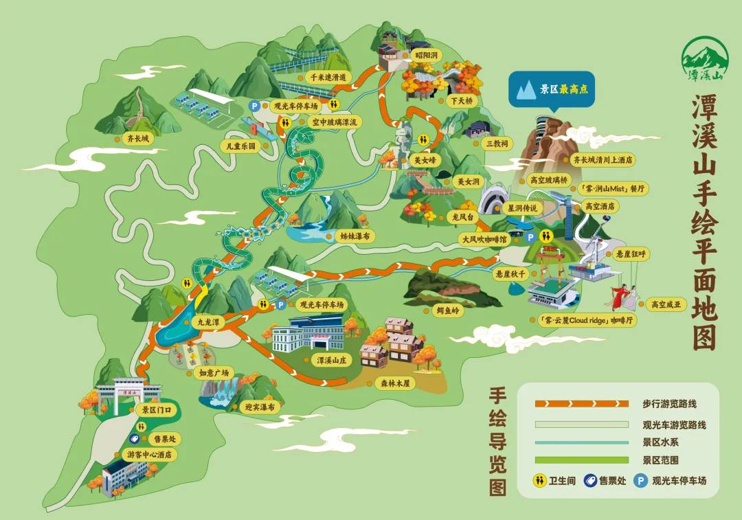 2017年,世界首例無背索斜拉弧形玻璃橋與百米觀光電梯橫空出世,這不僅是潭溪山的成名作,更是景區(qū)從自然觀光向多元體驗轉變的初步探索。秉承生態(tài)優(yōu)先的開發(fā)建設原則,潭溪山陸續(xù)打造了空中玻璃漂流、星洞傳說、懸崖秋千、懸崖狂呼、齊長城清川上野奢探險度假營等一系列各具特色的體驗項目與度假酒店,打破了游客對傳統(tǒng)山岳景區(qū)的想象邊界,讓游客體驗到了別樣的旅游樂趣。