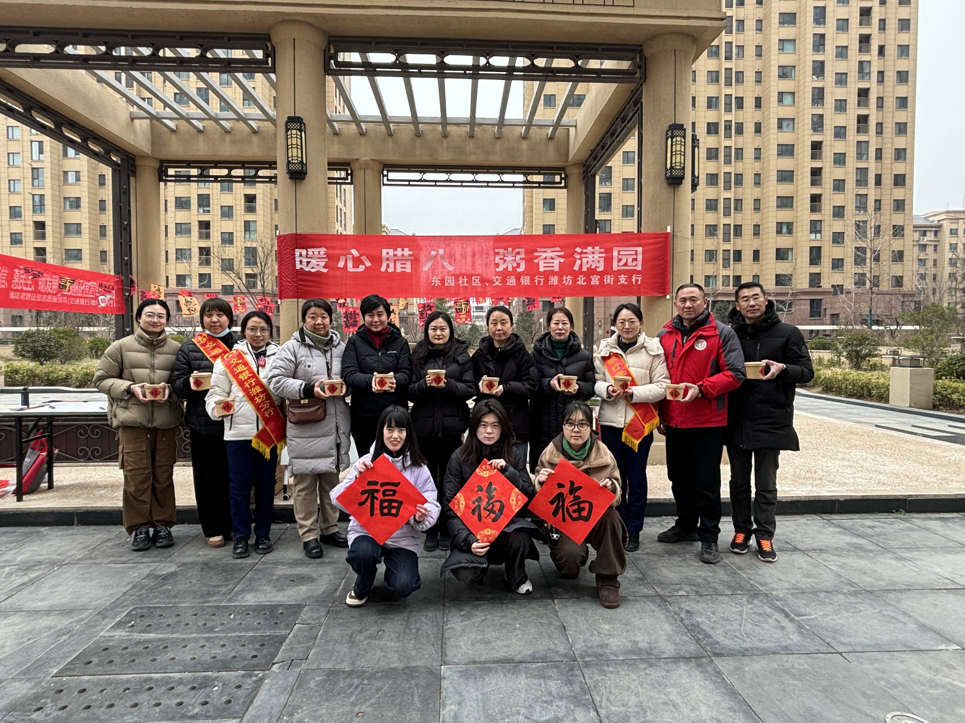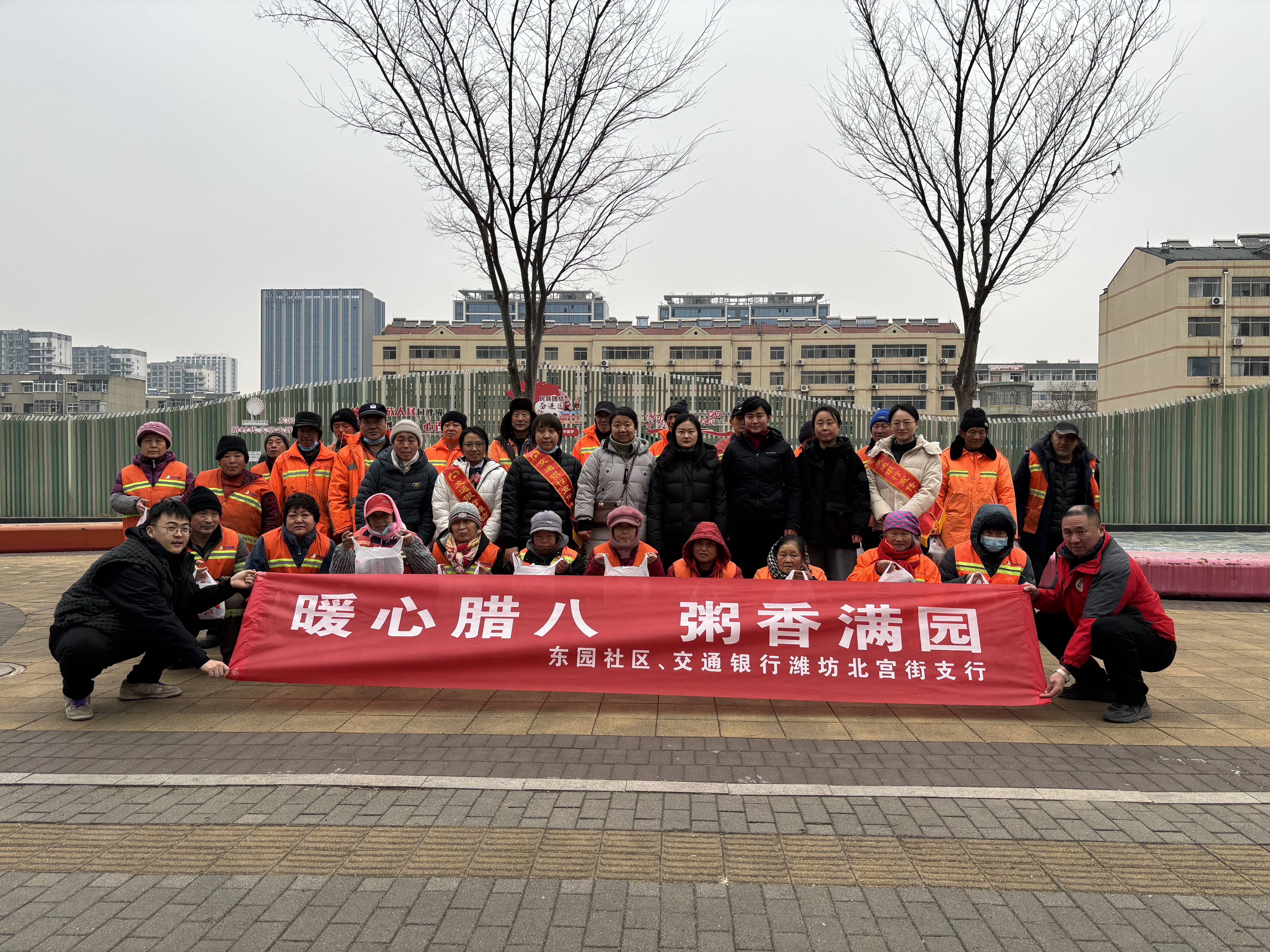 1月26日,交通銀行濰坊北宮街支行黨員干部組成志愿者團(tuán)隊(duì),聯(lián)合大虞街道東園社區(qū)開展“暖心臘八·粥香滿園”公益活動,為堅守崗位的環(huán)衛(wèi)工人送上熱氣騰騰的臘八粥與保暖暖手袋,為轄區(qū)居民及物業(yè)工作人員送上冬日最真摯的問候與祝福,用實(shí)際行動詮釋“金融為民”初心使命。